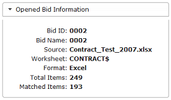 Any time you may need to view basic information about the opened bid, click the 'Open Bid Information' tab.