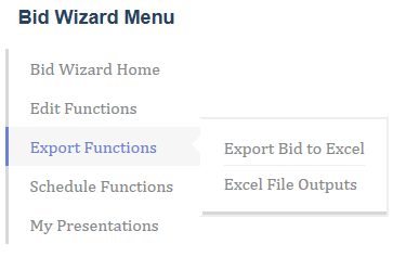 The Bid Wizard Menu has been changed to simplify, by grouping, the various functions of Bid Wizard.